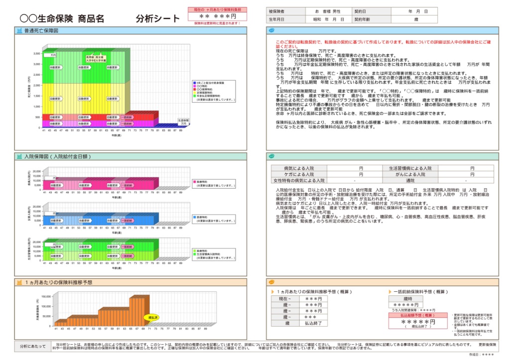 生命保険証券分析 分析シートサンプル 加入している生命保険等を、 わかりやすくグラフにして解説します。 オリジナル証券分析シート わかりにくい保険証券が一枚のわかりやすい分析シートに! オリジナル比較表 複数の保険商品を、一枚の比較表で比べて選べる! ご契約中の保険を活かしながら、 ムダのないベストプランをご提案します。 生命保険証券分析サービスの流れ 1. お電話またはWebからお申込み 2. 証券コピーのお預かり 3. 分析シートのご提案 近鉄保険サービス (コンサルティング) 営業時間:9:00~17:45 (土・日・祝・5/1・年末年始は除く) お電話からのお申込み WEBからのお申込み お申込みフォーム ●お問い合わせ確認メールを送信した後、3営業日程度で担当者よりご連絡いたします。 Webからの場合、証券の画像データを事前にご用意ください。(スマホのカメラ等で大丈夫です!)証券の見本はこちら